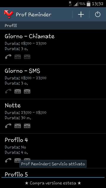 Chiamate e messaggi persi 1 Ecco la schermata Home con la lista dei profili del vostro Missed call reminder