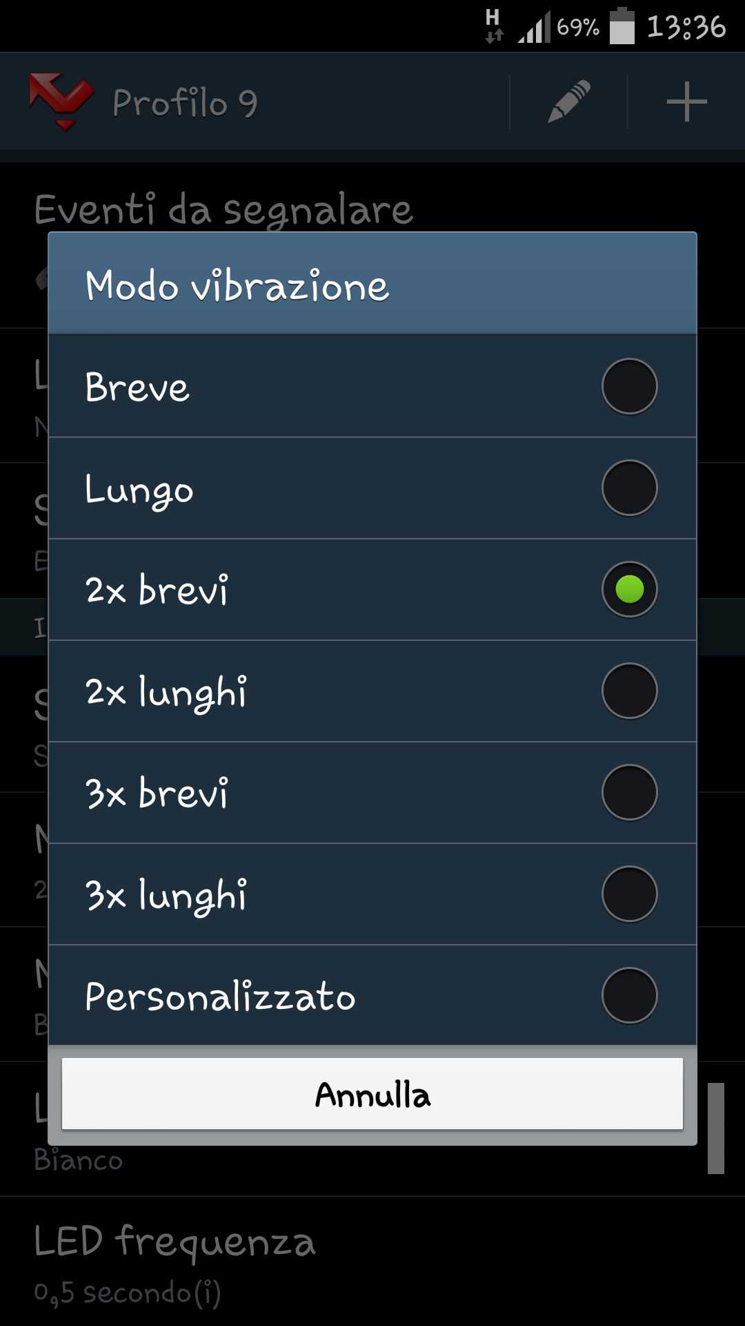 Chiamate e messaggi persi 10 Anche la modalità di vibrazione può essere modificata (per ogni parametro che desiderate cambiare non dovete far altro che eseguire un tap sulla voce corrispondente)