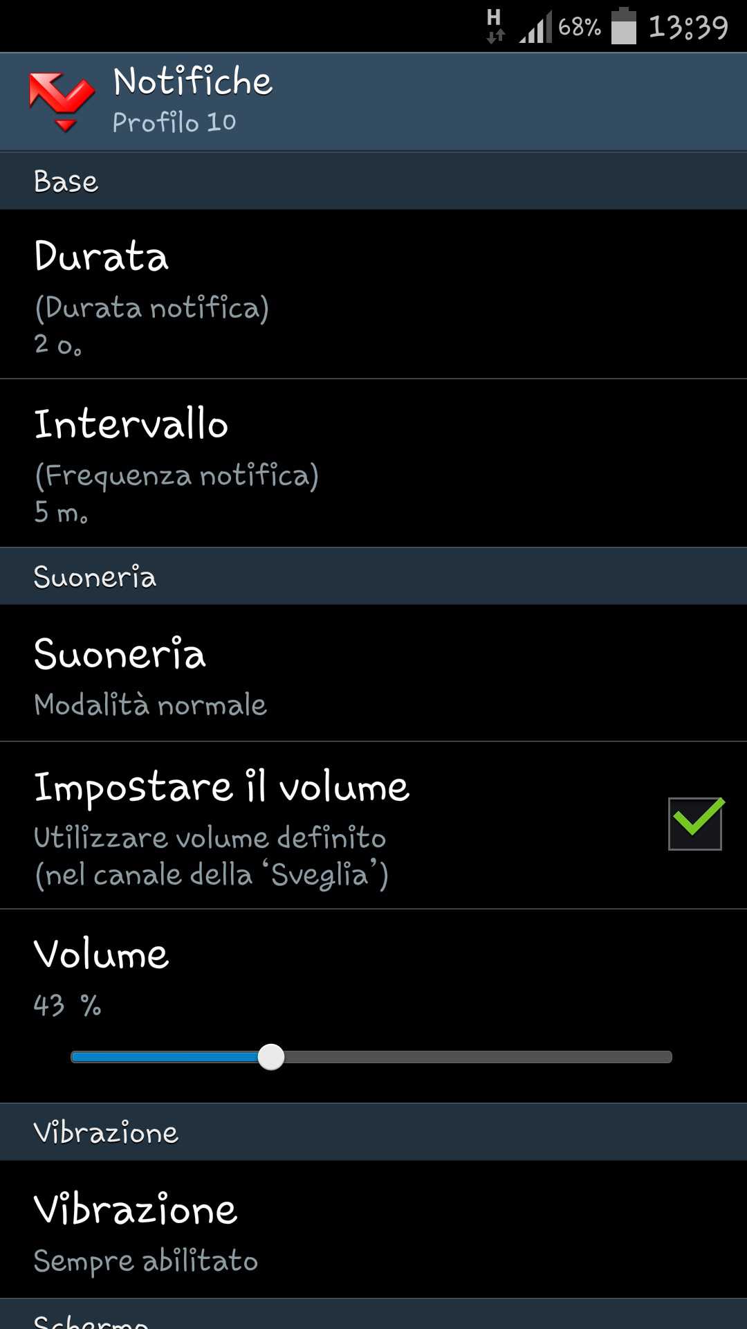 Esaminando ulteriormente la lista di opzioni dei profili troverete la sequenza delle notifiche. Pensate a queste come a dei sotto-profili che vengono eseguiti in progressione. Appena scaduto il primo posticipo (di default dopo 30 secondi), lo schema di notifica viene ripetuto per un certo lasso di tempo, lo stesso vale per lo schema successivo (1 minuto) e così via (5, minuti, 10 minuti). Naturalmente potrete modificare questi schemi a vostro piacimento oppure lasciarli impostati esattamente come sono.