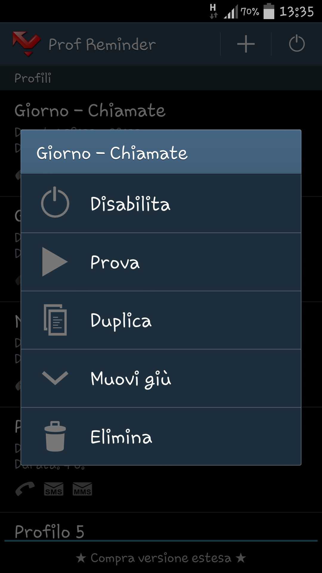 Chiamate e messaggi persi 8 Tenete il dito premuto su un profilo per cancellarlo o disattivarlo