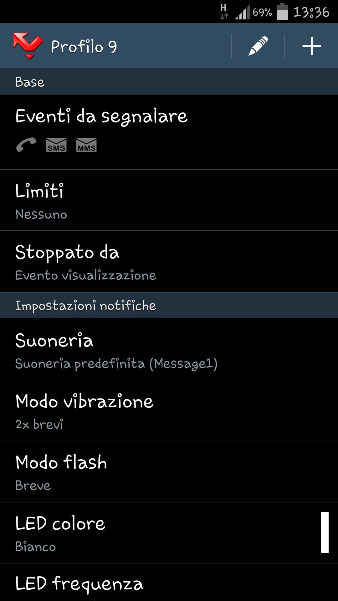 Se si esegue un tap su di un profilo è possibile modificarne le proprietà (e ne esistono veramente moltissime da editare). Tra le tante possibili modifiche troverete quella da applicare al suono della notifica o al tipo di vibrazione. Potreste addirittura abilitare il LED della fotocamera ad emettere luce intermittente, ma questa opzione non è supportata da tutti i telefoni.