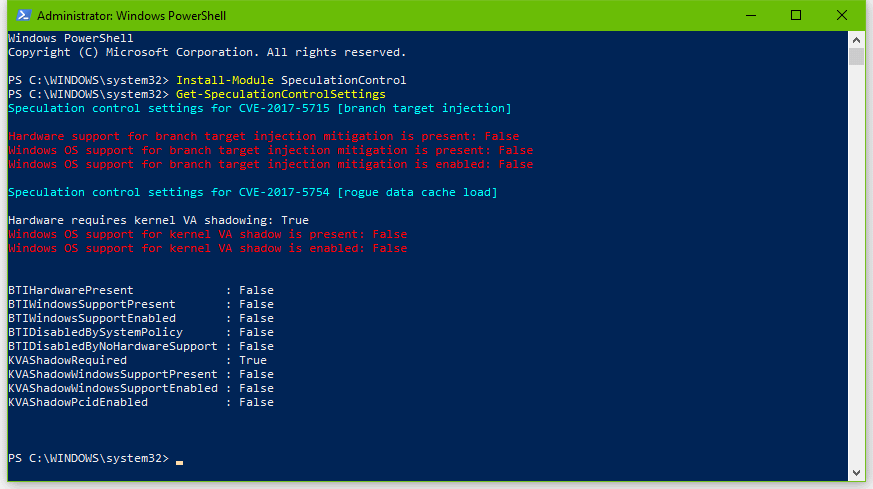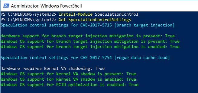 Verificare vulnerabilità Meltdown e Spectre Windows