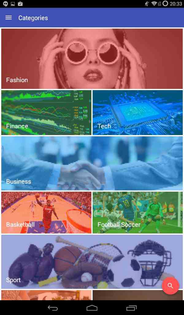 - Apparirà ora la schermata principale con tutte le categorie proposte: