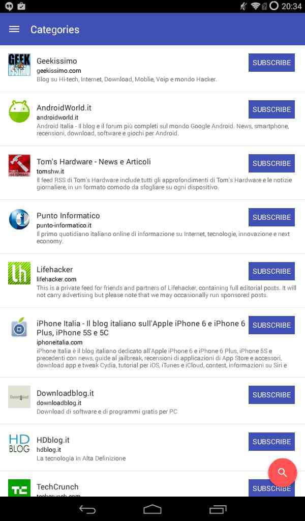 - Una volta scelta la categoria o navigando tra di esse è possibile aggiungere i vostri feed preferiti grazie anche alla possibilità di ricerca