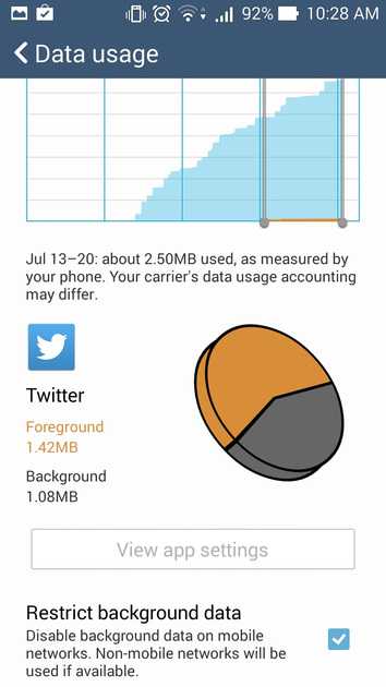 Se sapete che una data applicazione utilizza un gran numero di dati ma non volete che questo accada quando l’applicazione non è attiva, potreste ridurre l’uso dei dati in background per tale applicazione. A questo proposito non dovete far altro che andare su Impostazioni > Utilizzo dati, scorrere l’elenco proposto, selezionare l’applicazione della quale desiderate ridurre il traffico dati e – nella nuova schermata che vi appare – scorrere nuovamente la lista fino in fondo e selezionare “Limita dati background“.