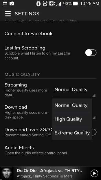 Se eseguite stream audio sul vostro telefono, controllate se è presente un’opzione che riduca la qualità streaming; essa consentirà un notevole risparmio sull’utilizzo dati. Con Spotify, ad esempio, la modalità Alta Qualità esegue lo streaming a 160 kilobits per secondo, mentre la Qualità Normale lo fa a soli 96 kbps. Ancora meglio se scaricate i vostri brani preferiti quando siete connessi tramite Wi-Fi: in questo modo non dovrete utilizzare il traffico dati a vostra disposizione scaricando i pezzi in un secondo momento.