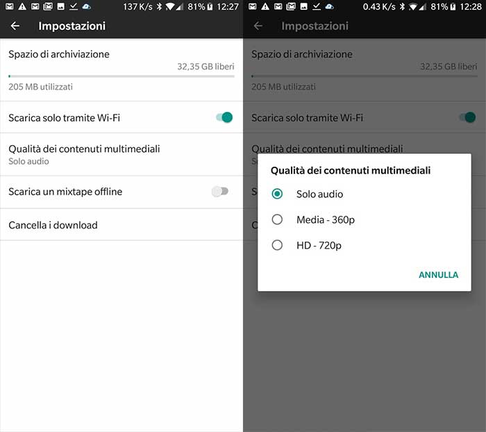 Ora che abbiamo scoperto come scaricare musica in YouTube Music adiamo a vedere come cambiare la qualità dello stesso download. Il servizio può scaricare sia l’audio che il video, quindi ovviamente ogni download avrà un impatto diverso.
