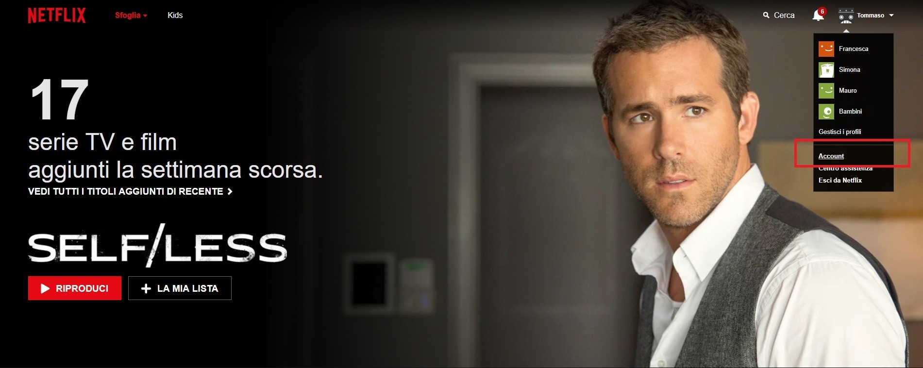 - Recatevi sulla voce “Account” posizionata nel menù in alto a destra;