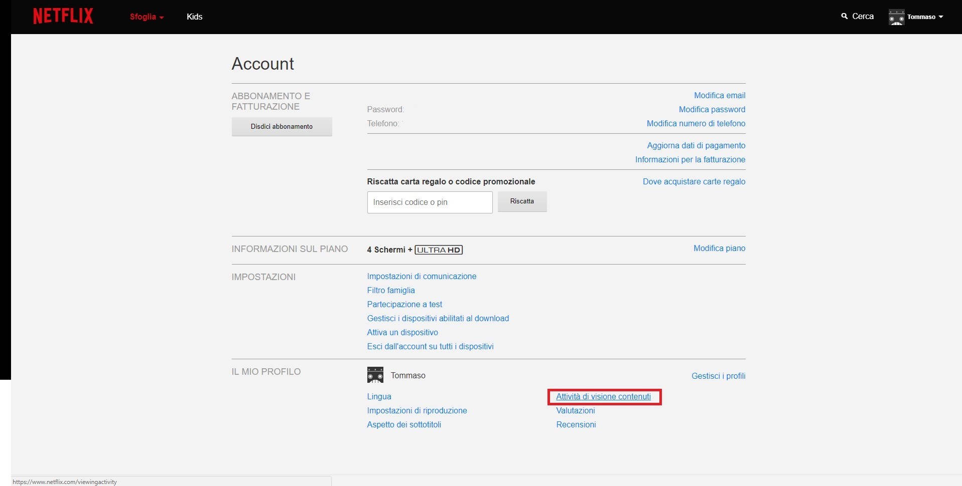- Cliccate su “Attività di visione contenuti“, questa scheda riporta tutta la vostra attività;