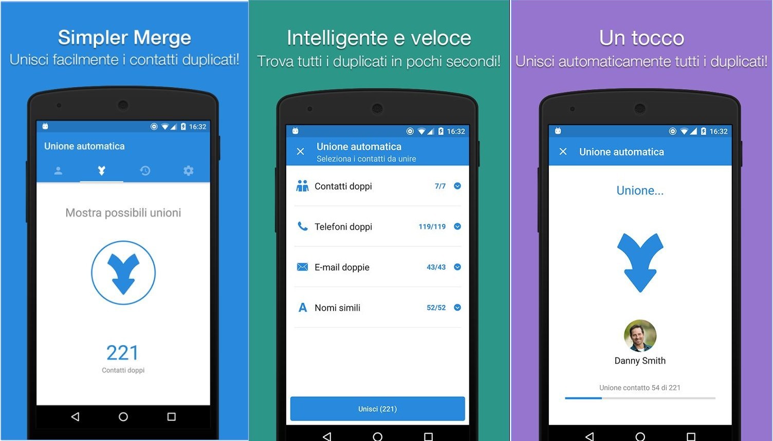 Identificati tutti i problemi potrai decidere cosa fare, se eliminarli, unirli, tutto con un solo tocco senza perdite di tempo o procedimenti inutili. L’applicazione è veramente tra le più apprezzate sul Play Store e con oltre 500.000 installazioni siete certamente nelle mani giuste. In pochi minuti avrete trovato finalmente risposta al come unire contatti doppi Android.