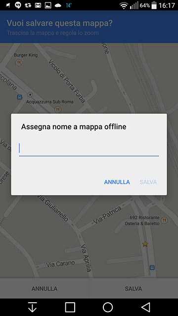 - Scorrere fino alla fine del menu dove troverete l’opzione Salva mappa offline;