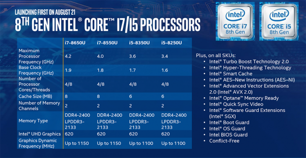Le CPU Intel Coffee Lake di ottava generazione sono state presentate ufficialmente quest’oggi. Questi nuovi processori sono studiati e destinati ai dispositivi 2-in-1 e laptop e mirano a ridurre i consumi ed il calore generato in vantaggio di un numero maggiore di core e threads.