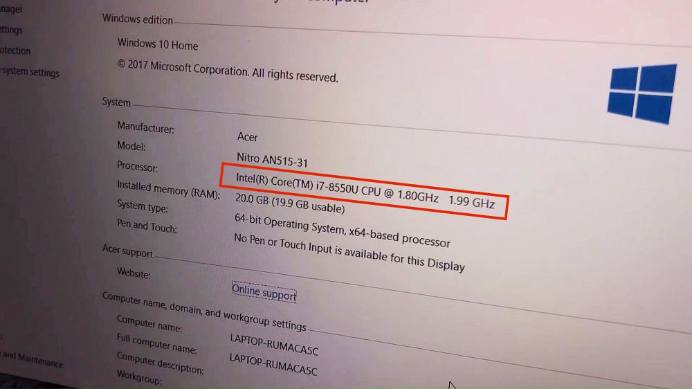 Acer Nitro AN515-31 è il notebook che monta un processore Intel Core i7-8550U, Quad-Core con otto Thread con un clock base di 1.8Ghz mentre quello in Turbo sale a 2GHz. Dalla foto delle specifiche tecniche è possibile notare come questo notebook monterà 20Gb di memoria RAM DDR4.