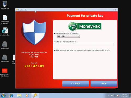 Terminata questa attività il software informa l’utente della propria presenza sul PC, chiedendo il pagamento di una somma che varia di volta in volta ma che ultimamente sembra essersi attestata in circa 500 euro, per decriptare i file. Il pagamento del riscatto va inoltre eseguito entro 72 od al massimo 100 ore dal ricevimento del messaggio, altrimenti la chiave privata verrà cancellata dal server e nessuno potrà più accedere a questi importanti documenti.