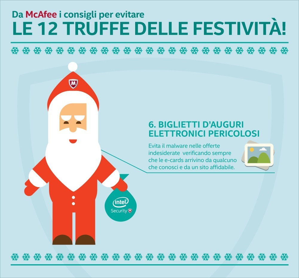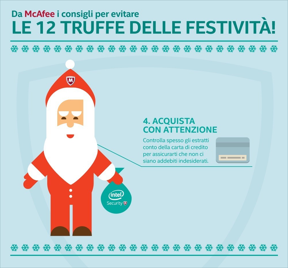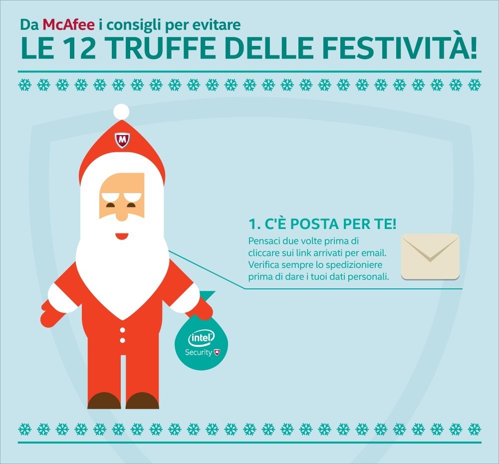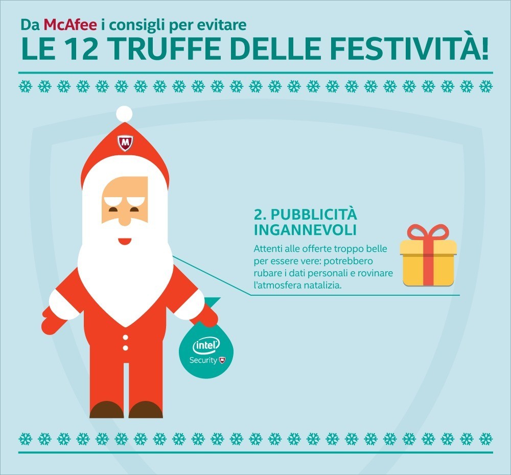 I consigli di McAfee per vivere il periodo che ci avvicina alle feste in un’atmosfera serena, senza regali indesiderati durante lo shopping on-line per i regali di Natale. Ecco come proteggersi durante la navigazione, gli acquisti on-line, e come evitare le “12 truffe delle festività”.