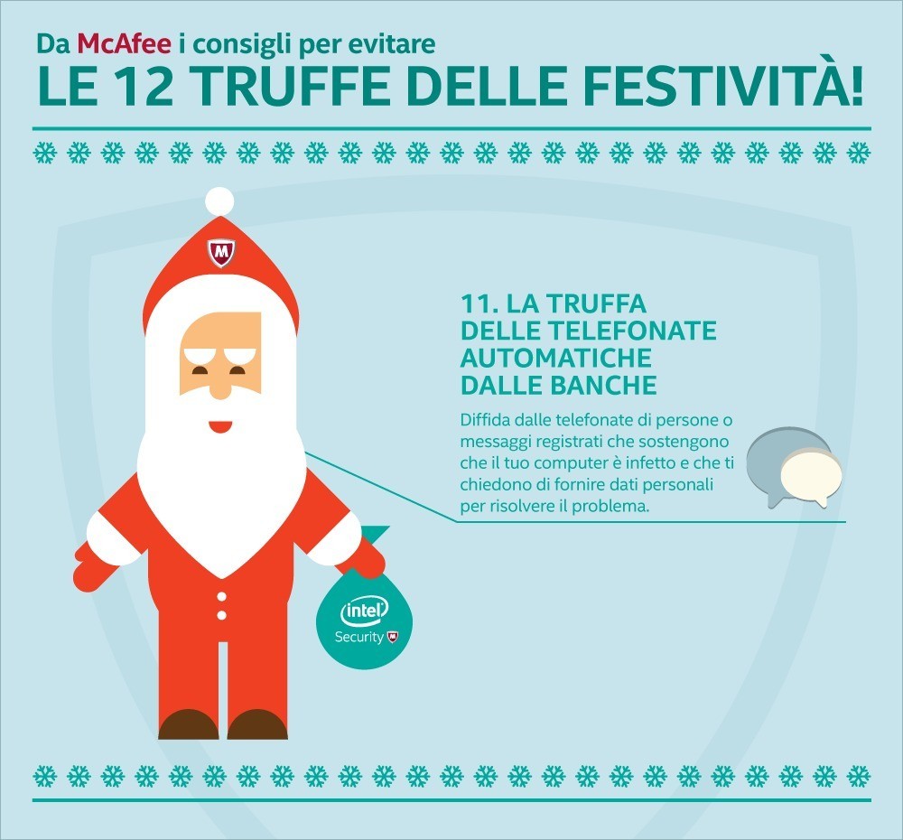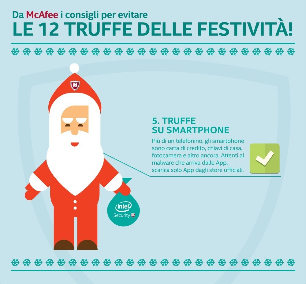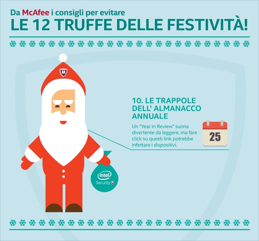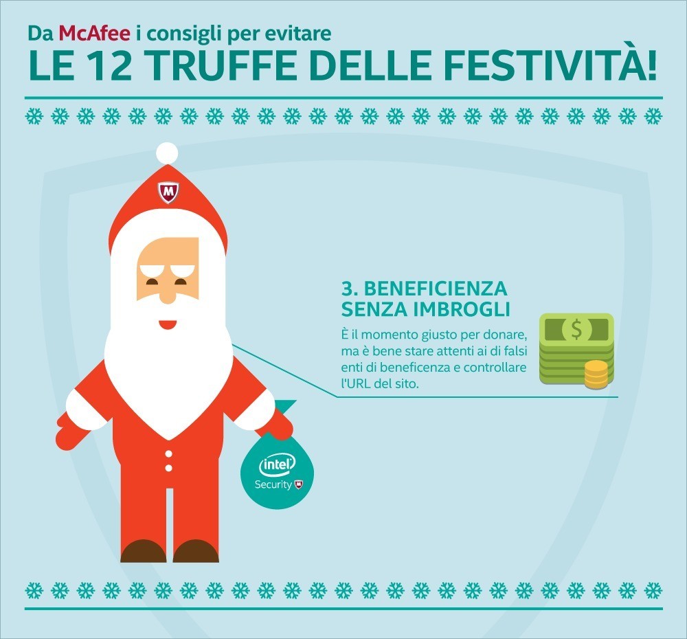 I consigli di McAfee per vivere il periodo che ci avvicina alle feste in un’atmosfera serena, senza regali indesiderati durante lo shopping on-line per i regali di Natale. Ecco come proteggersi durante la navigazione, gli acquisti on-line, e come evitare le “12 truffe delle festività”.