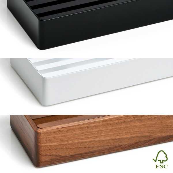 Come detto All-Dock sarà disponibile in tre versioni, con la più piccola venduta a 59$, la versione “media” a 89$ e la più grande a 119$, mentre per tutti i modelli saranno disponbili tre diverse colorazioni, bianca, nera ed un elegante versione noce.