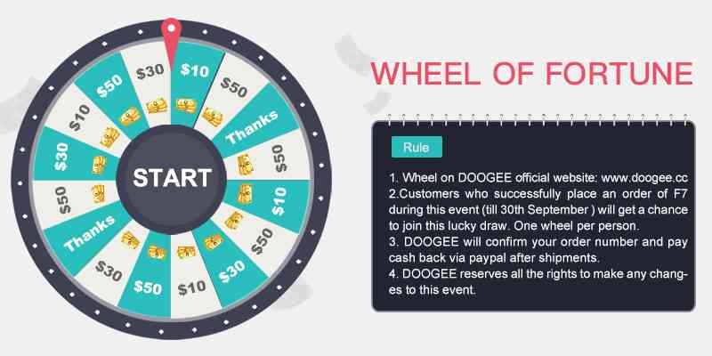 Dopo aver confermato l’ordine, visitando il sito di DOOGEE al link: http://www.t5-doogee.cc/ sarà inoltre possibile partecipare ad un divertente contest: inserendo i propri dati e utilizzando la “ruota della fortuna” di DOOGEE, si potranno infatti vincere ulteriori cash back.