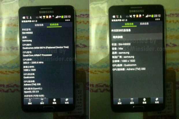 Ininzialmente si pensava che questo device montasse una cpu di tipo Samsung Exynos Octa core. Appaiono invece delle foto che confermano la tipologia di cpu montata dal nuovo phablet di casa Samsung, che rivelano una CPU Sanpdragon 800 Quadcore a 2.3 GHZ – affiancata da una GPU Adreno 330 per la parte grafica.