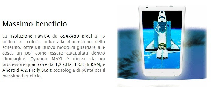 Dynamic Maxi come detto è dotato di display da 5.5 pollici con risoluzione FWVGA (854×480), processore quad core da 1.2 GHz, 1 GB di Ram, fotocamera da 8 megapixel con autofocus e flash, memoria interna da 4 GB espandibile tramite slot microSD, sistema operativo Android 4.2.1 e l’ormai consolidato sistema di gestione dual sim ottimizzato da NGM che permette di gestire in tutti gli aspetti le sim inserite nel dispositivo, come ad esempio la possibilità di spegnere una singola sim (magari quella dedicata al lavoro quando finisce la giornata), oppure la funzionalità “Smart Dial” che permette di associare uno o più contatti ad una specifica sim in modo da utilizzarne la tariffa oppure per non mostrare l’ulteriore numero a disposizione dell’utente.