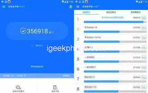 Subito dopo ci vengono anche mostrati i punteggi benchmark di questo ipotetico Huawei Mate 20. Il dispositivo sarebbe in grado di realizzare su piattaforma AnTuTu ben 356918 punti. Per voi è tutto un fake o realtà?