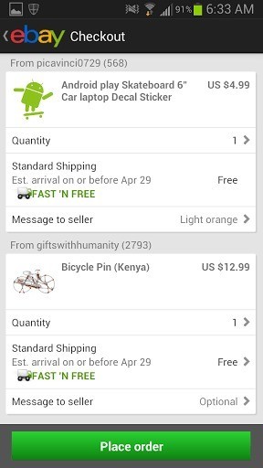 Con l’aggiornamento alla versione 2.2. Ebay per Android potremmo utilizzare una nuova interfaccia più facile e comprensibile nelle schermate Carrello e Acquisto, oltre a poter visualizzare finalmente immagini più grandi per gli articoli presenti nelle inserzioni.
