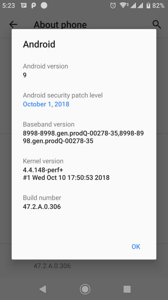 L’aggiornamento arriva con numero di build 47.2.A.0.306 ed aggiunge anche le patch di sicurezza Android del mese di ottobre 2018. Sembrerebbe che questo ritardo (era previsto per il 26 ottobre) sia stato causato da un bug.