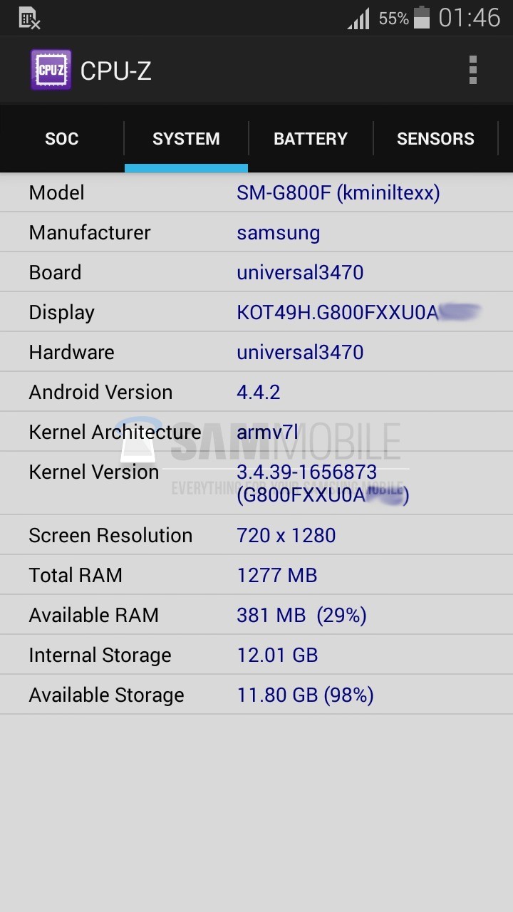 Per quanto riguarda le caratteristiche tecniche i benchmark AnTuTu e CPU-Z confermano che il Galaxy S5 Mini sarà così equipaggiato: