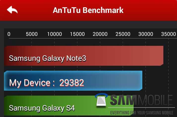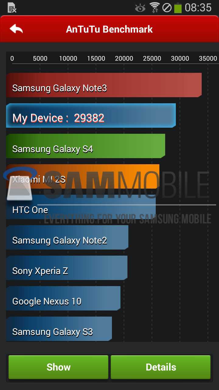 Di seguito gli Screenshot fatti da SanMobile relativi ai test di Antutu Benchmark; come potete vedere il Galaxy Note 3 Lite ha segnato un 29K punti in Antutu, che porta questo modello a ridosso del fratello maggiore e al di sopra di altri dispositivi degni di nota.