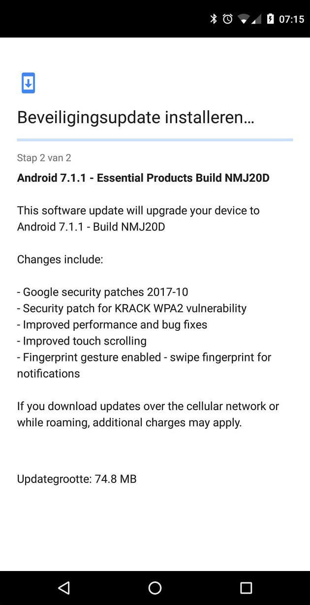 Dopo l’aggiornamento di inizio mese inerente alla fotocamera, Essential Products ha rilasciato un altro aggiornamento per il suo Essential Phone. L’update porta con sé le ultime patch di sicurezza Android di ottobre 2017, una patch di sicurezza che risolve la vulnerabilità KRACK ed altri miglioramenti. L’aggiornamento è più piccolo rispetto al precedente e pesa circa 74MB. Il firmware si aggiorna alla versione NMJ20D.