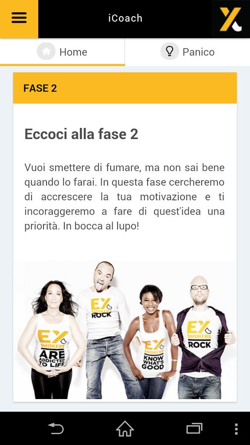 L’App Exsmokers iCoach è gratuita, già disponibile nel playstore di Google e su iTunes per Ios, si presenta nelle 23 lingue ufficali della comunità Europea. E’ un app studiata appositamente per aiutare chi ha intenzione di smettere, con consigli, metodi e gratificazioni: un sistema che ha già aiutato il 30% dei giovani ad abbandonare definitivamente il dannoso e costoso vizio del fumo. La App si presenta con un breve questionario iniziale, dove si determina il tipo di fumatore, l’età e gli anni di dipendenza, e attraverso un programma personalizzato, l’utente riceverà suggerimenti, consigli, feedback, tecniche, esercizi e mini test per aiutarlo a combattere durante l’astinenza dal tabacco, valutando la reazione psicologica dell’utente passo dopo passo.