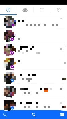Qui in basso lasciamo una serie di immagini trapelate che rivelano il funzionamento delle conversazioni via SMS; queste saranno evidenziate da un colore diverso rispetto alle conversazioni online, precisamente verranno indicate in viola i messaggi inviati via SMS e col solito blu i messaggi online.