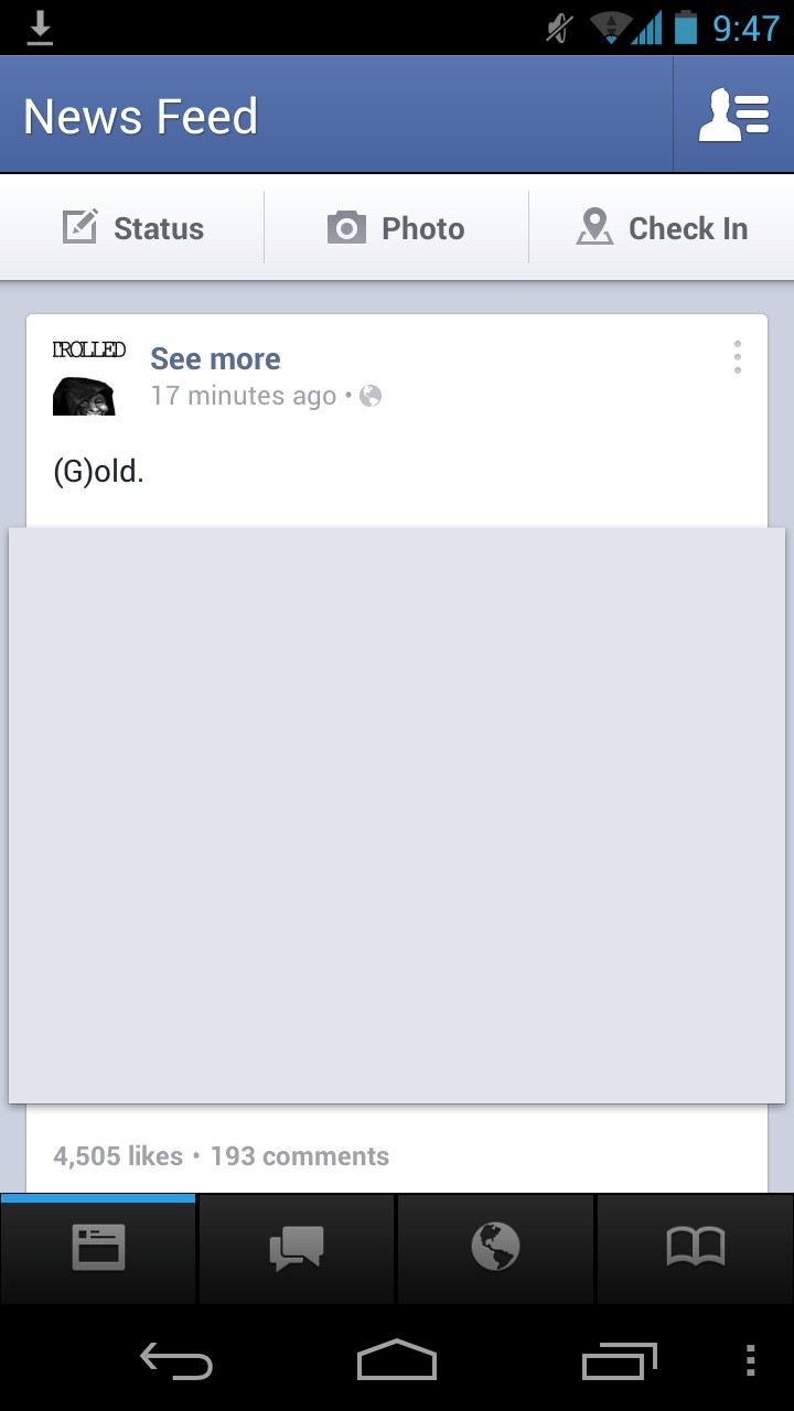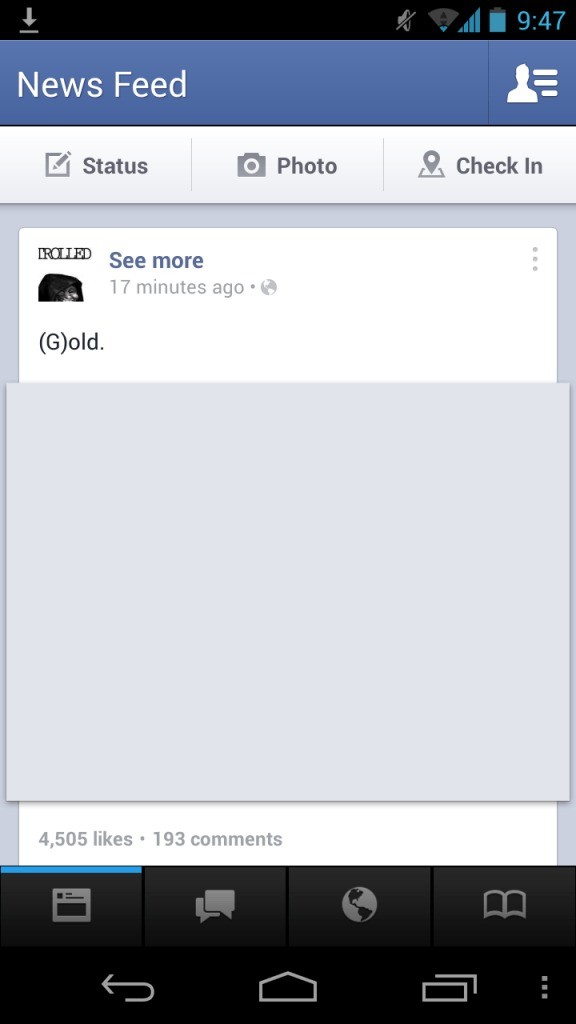 Facebook ha rilasciato una nuova versione beta della propria applicazione per Android nella quale viene introdotta una nuova interfaccia grafica che richiama molto da vicino quella dell’applicazione Facebook per Windows Phone 8 con una barra di navigazione composta da quattro tab che corrispondono a news, messaggi,notifiche e contatti, mentre sarà possibile gestire tutte le altre opzioni quali, eventi,gruppi,richieste di amicizia ed altro con un semplice swype verso sinistra.