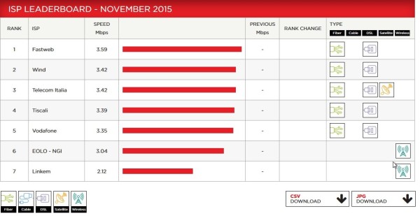 Netflix ha pubblicato il primo ISP Speed Index per l’Italia, relativo al mese di Novembre. Fastweb vince su tutti con una connesione di 3,59 Mb/s: più indietro Tiscali con 3,39 Mb/s e Vodafone con i suoi 3,35 Mb/s, tutte con offerte in fibra e DSL.