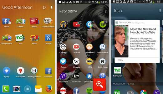 Quando si utilizza la funzione di ricerca, le applicazioni correlate e i siti web che avremmo visitato verranno visualizzati sul telefono. Per fare un esempio, se si cerca di Katy Perry, invece di vedere la homepage Spotify, il launcher creerà un collegamento Spotify alla pagina dell’artista da noi cercato. E se si cerca ‘ news’ o ‘ tech’, potrete vedere le schede con le informazioni rilevanti per la vostra ricerca, inclusi video .