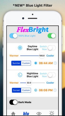 Tuttavia,esiste già una app che fa proprio questo, ed è già disponibile per iPhone: FlexBright, è una nuova applicazione che funziona esattamente come il popolare F.lux per Mac, in quanto filtra la luce blu, e predilige le tonalità di rosso, che sono più riposanti per gli occhi durante la notte .