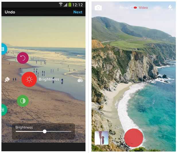 Completamente rivista la sezione più importante di un applicazione che si occupa di foto; l’interfaccia per lo scatto delle foto infatti è stata completamente ricostruita, con l’inserimento di tasti rapidi per l’attivazione del flash ed il passaggio dalla modalità foto a quella video, oltre ad un tasto per l’avvio dello scatto o della registrazione video finalmente ridimensionato e più facile da selezionare. Introdotta anche la classica miniatura, presente da sempre in tutti i diretti concorrenti, che permette di selezionare l’ultimo scatto effettuato per l’accesso rapido alla galleria immagini.