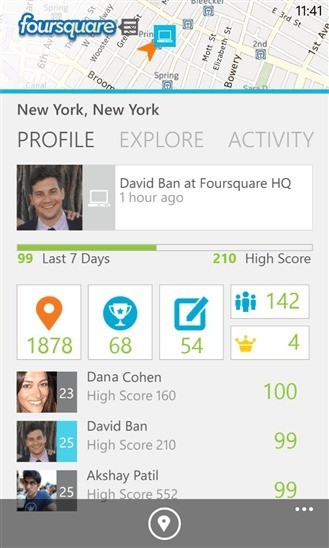 Foursquare è una delle applicazioni più apprezzate ed utilizzate sui dispositivi Windows Phone, e permette di condividere con amici e conoscenti i propri spostamenti e luoghi di interesse, ricevendo in cambio suggerimenti personalizzati e offerte basate sulla propria posizione utilizzando un applicazione ufficiale ben realizzata e facile da utilizzare.
