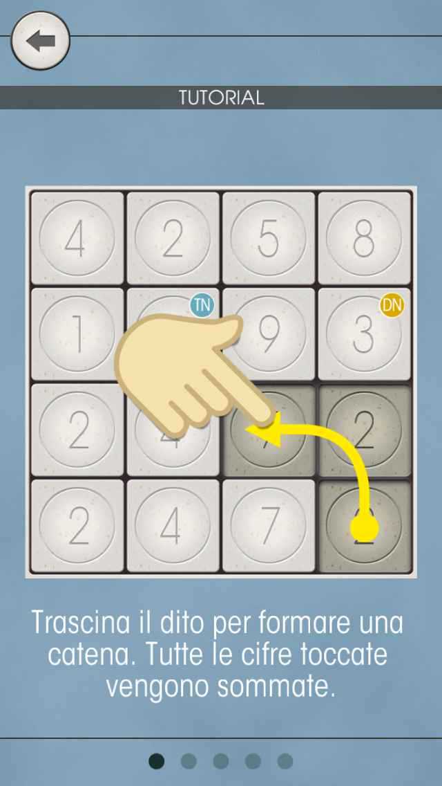 - Torna indietro, per permettere al giocatore di tornare indietro di una casella durante il tracciamento della catena di numeri