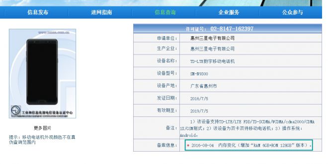 Come potete vedere qui sopra, l’ente di certificazione cinese TENAA ha infatti certificato ufficialmente ieri il modello SM-N9300 del Galaxy Note 7 con 6 GB di RAM e 128 GB di memoria interna che, tra l’altro, era precedentemente apparso con la stessa sigla identificativa sul noto strumento di misurazione prestazionale Geekbench con le stesse caratteristiche tecniche.
