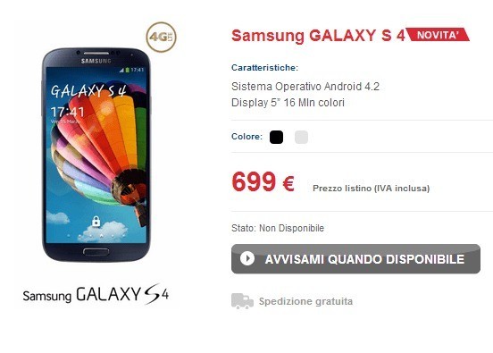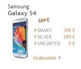 Il Galaxy S4 16 GB con Wind è disponibile sia a prezzo pieno (€699) o abbinandolo con tre tipologie di abbonamento: