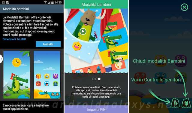 L’applicazione relativa alla modalità bambino, viene inserita anche sul Galaxy S4 dopo essere stata inserita sul Galaxy S5 e aggiornata sul Galaxy Tab 4. Questa applicazione introduce una modalità controllata per accedere a un mondo di giochi e contenuti pensati per i più piccoli .