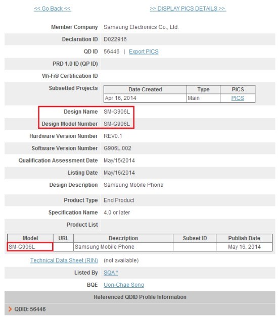 Uno smartphone, per essere lanciato, deve essere necessariamente certificato da una serie di organi per assicurarsi che le trasmissioni radio ed il resto lavori come dovrebbe. Il Bluetooth SIG è un altro anello della lunga catena di certificazione smartphone dove i vari dispositivi devono passare e proprio oggi, un telefono cellulare Samsung con il numero di modello SM-G906L è apparsonelle loro documentazioni. I lettori più attenti ricorderanno che SM-G906 è stato menzionato già nelle varie voci sul Galaxy S5 Prime, e l’ultima lettera dovrebbe essere un suffisso specifico della regione.