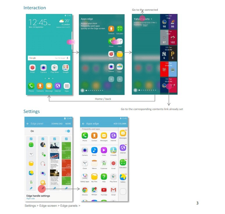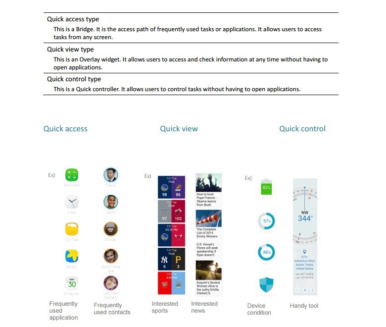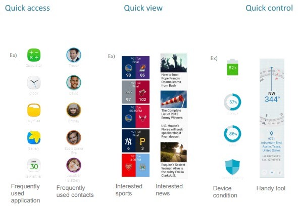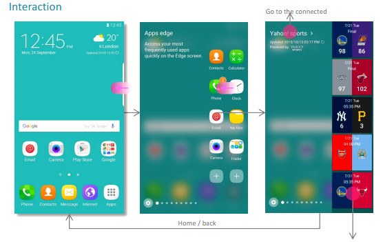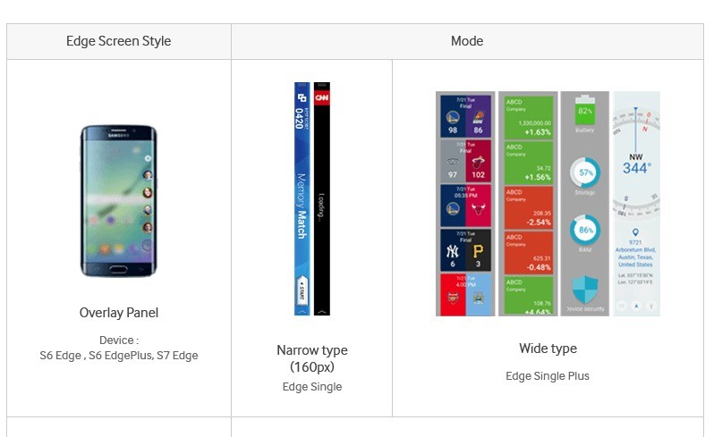 Le linee guida e le immagini pubblicate da Samsung, mostrano le nuove funzioni Edge Single ed Edge Single Plus, evoluzione di quella che in passato era People’s Edge e dotata ora di pannelli da 160 pixel di larghezza per la modalità di visualizzazione Single e decisamente di maggiori dimensioni per la modalità Edge Single Plus, all’interno della quale sarà possibile utilizzare widget, feed di notizie ed addirittura app appositamente realizzate per i Galaxy S7 Edge.