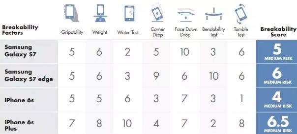 La speciale classifica stilata da Squaretrade ha visto arrivare in quarta ed ultima posizione, giù dal podio, iPhone 6s Plus, con un media rischio rottura di 6.5 su 10. Al terzo posto troviamo invece Galaxy S7 Edge con una media rischio rottura di 6 su 10, seguito dal fratello minore, ma più resistente, Galaxy S7 con un voto di 5 su 10. Distaccato, il vincitore assoluto e smartphone più resistente dei quattro, si conferma iPhone 6s che con una media di rischio rottura di 4 su 10, ancora una volta dimostra la cura e la qualità dei prodotti targati Apple.