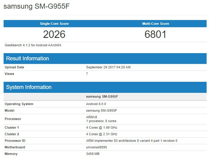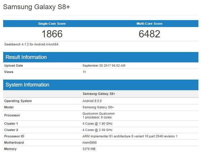 Sul noto portale di Geekbench è apparso il Galaxy S8 Plus con sistema operativo aggiornato ad Android 8.0 Oreo.