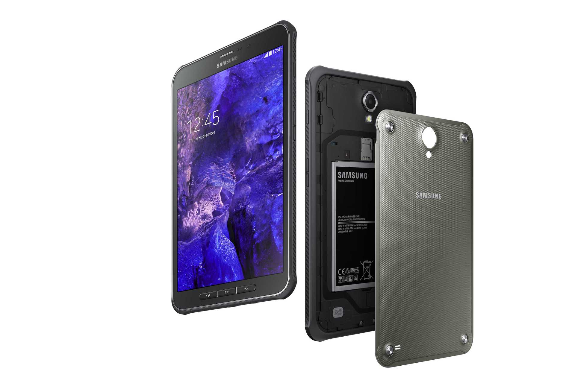 Passando alle specifiche tecniche, il Galaxy Tab Active esegue Android 4.4 KitKat ed esibisce un display TFT da 8 pollici e risoluzione 800 x 1200; è dotato di connettività LTE, una stilo definita C-Pen, Samsung KNOX, fotocamera frontale da 1.2MP e retrocamera da 3.1MP. Inoltre troviamo a bordo un processore quad-core a 1.2 GHz, 1.5 GB di RAM, 16 GB di memoria interna espandibile e una batteria sostituibile dall’utente da 4,450 mAh (fino a 10 ore di utilizzo). Il device pesa 393 grammi e misura 213,1 x 126,2 x 9,75 millimetri.