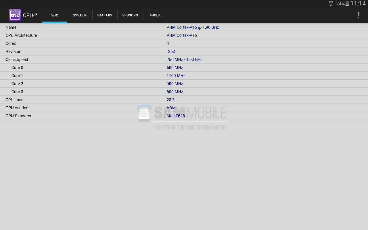 I tablet saranno dotati di processore Samsung Exynos 5 Octa-Core (5420) da 1.9 GHz (con 4 core Cortex-A15 + 4 Cortex-A7) per la versione Wi-Fi e con processore Qualcomm Snapdragon 801 per la versione con connettività LTE.
