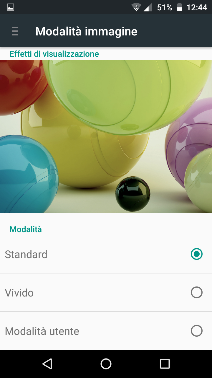 Un’unità da 5 pollici di tipo IPS in risoluzione HD (294ppi) tutto sommato con una buona definizione, un po’ meno la qualità del pannello. Il punto di bianco è luminoso ed il display è ben visibile sotto il sole ma i neri sono molto grigi e luminosi soprattutto di taglio. Non mancano le funzionalità aggiuntive di Mira Vision che oltre a permettere di scegliere tra varie impostazioni predefinite di calibrazione del colore consente di calibrare in maniera del tutto personale il contrasto, la nitidezza ed altro.