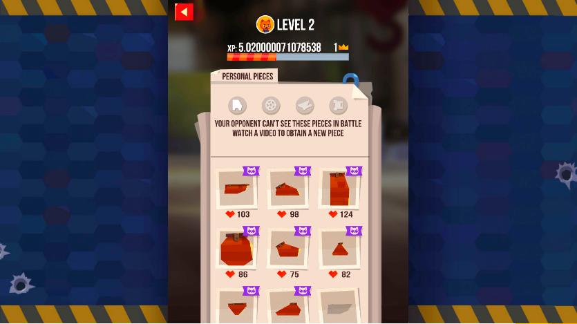 Man mano che il nostro micio otterrà un certo numero di vittorie per scalare la classifica e accedere a classi più avanzate, riceveremo pezzi e armi aggiuntivi da collazionare nel nostro laboratorio di montaggio.